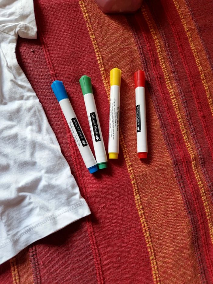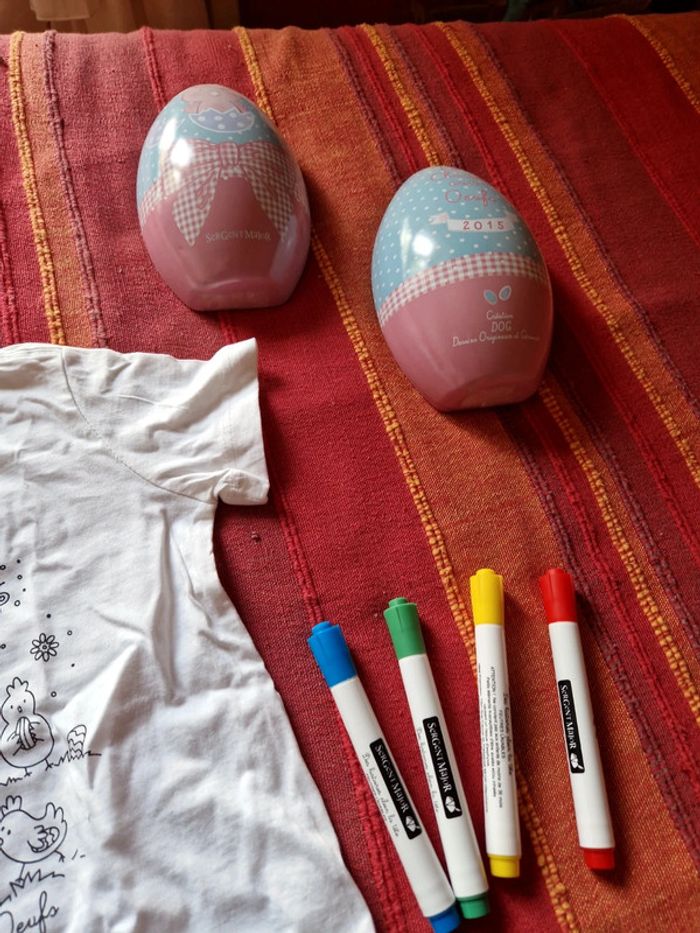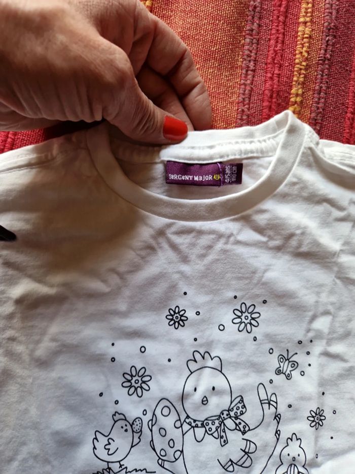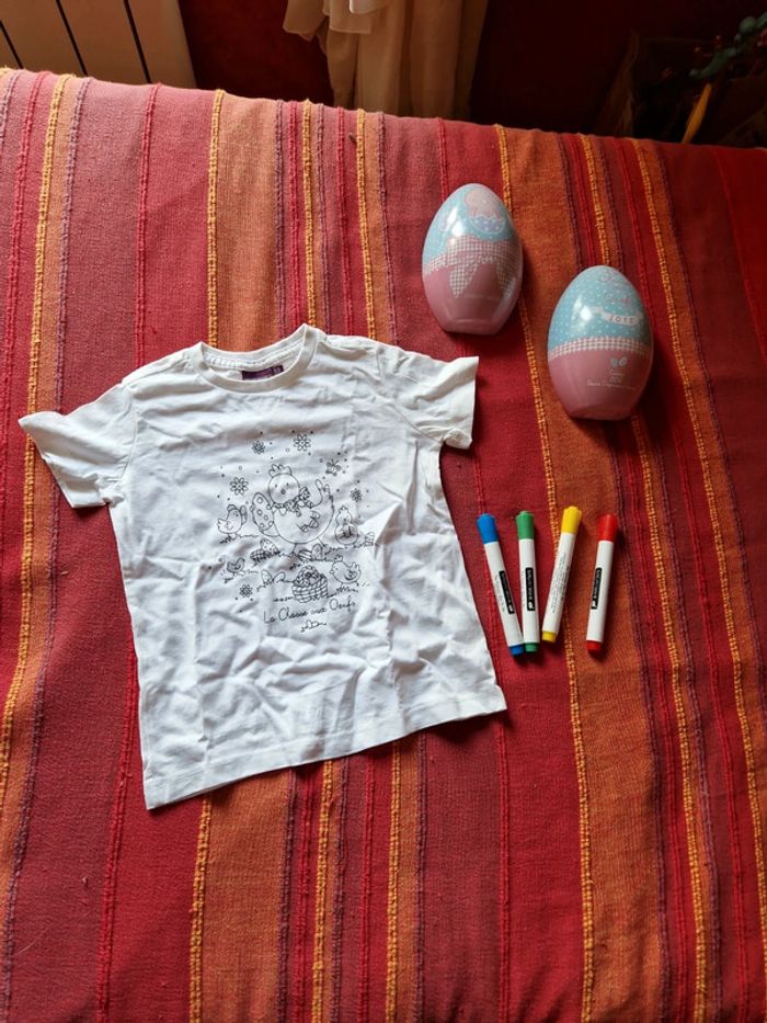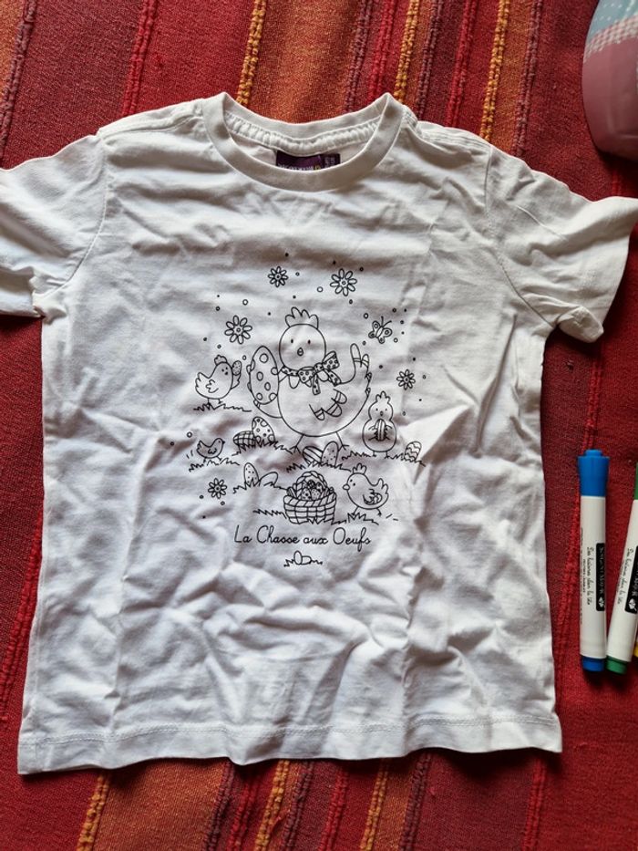Tee-shirt avec feutre pour colorier sur le textile. Part au lavage. Neuf jamais utilisé.