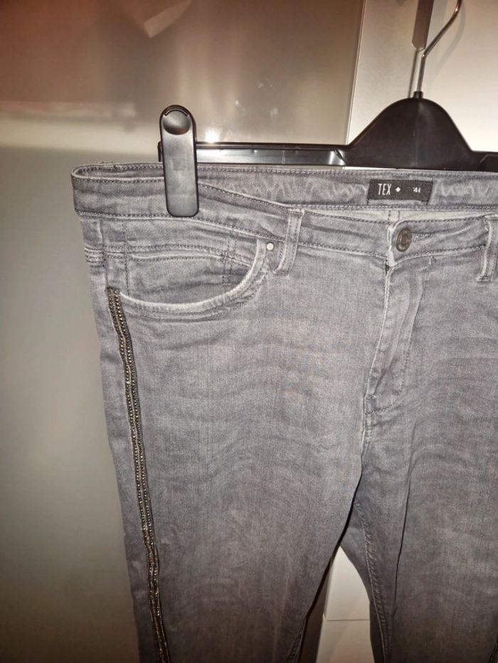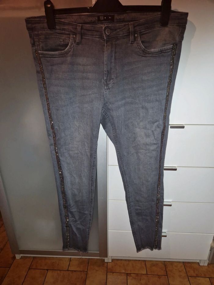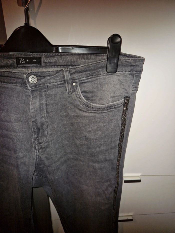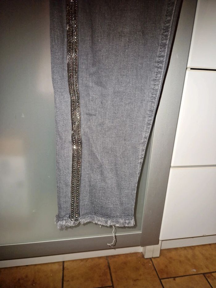 Neuf jamais porté juste lavée. Taille 44 Tout le long des jambes bande de strass 98% coton 2% elasthanne.