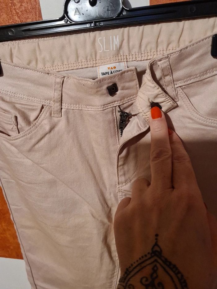 Maille irisé. Taille ajustable. 61% coton 35% polyester 4% elasthanne. Neuf jamais porté