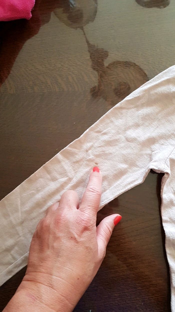 100% coton Petite tache sur la manche sur le derrière. Voir photo