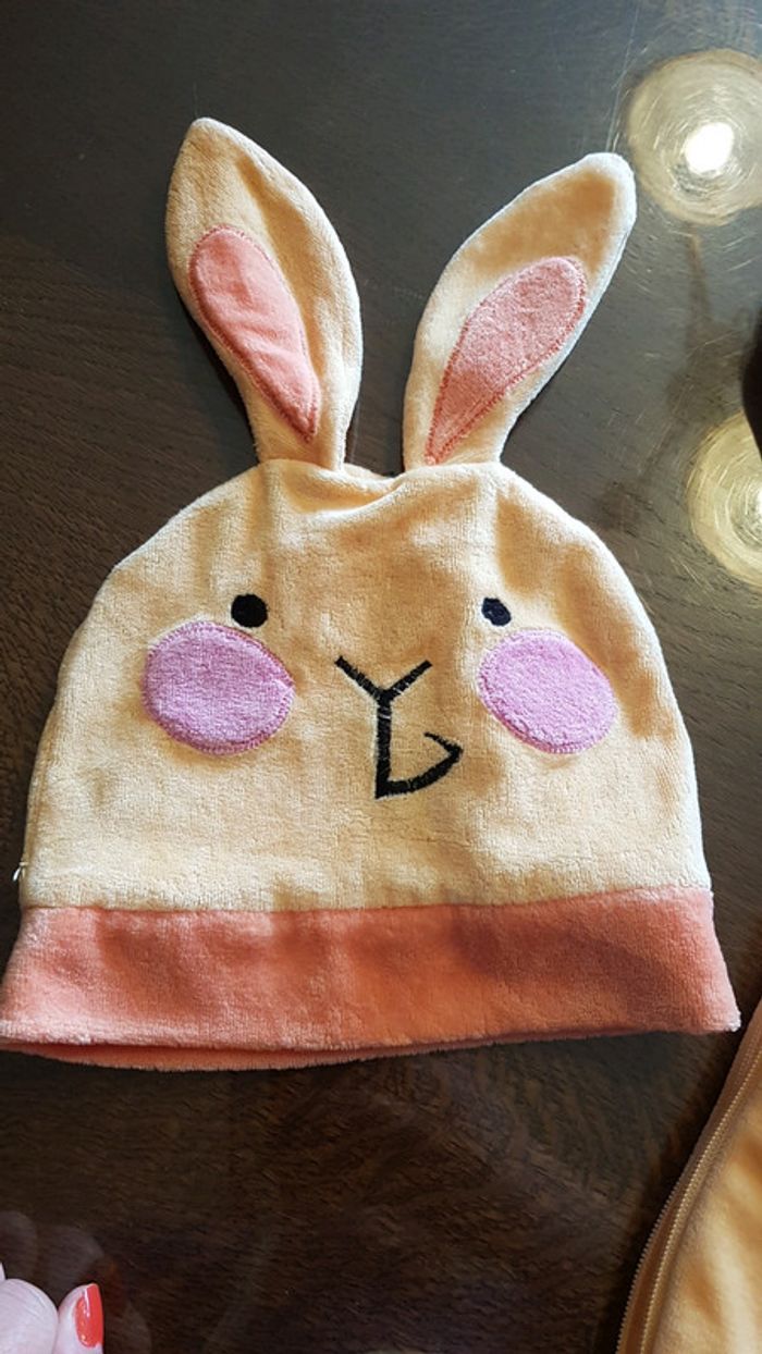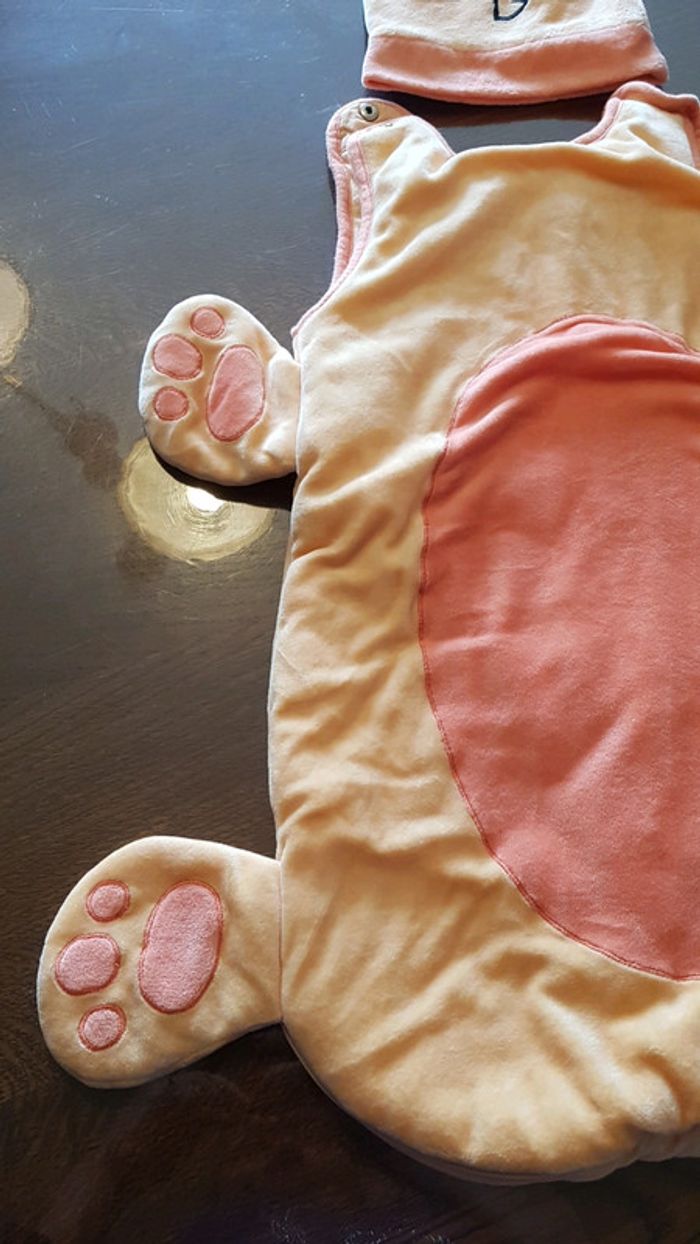 Exterieur 80% coton 20% polyester Intérieur. 100% coton Vendu avec le bonnet Taille naissance à 6 mois
