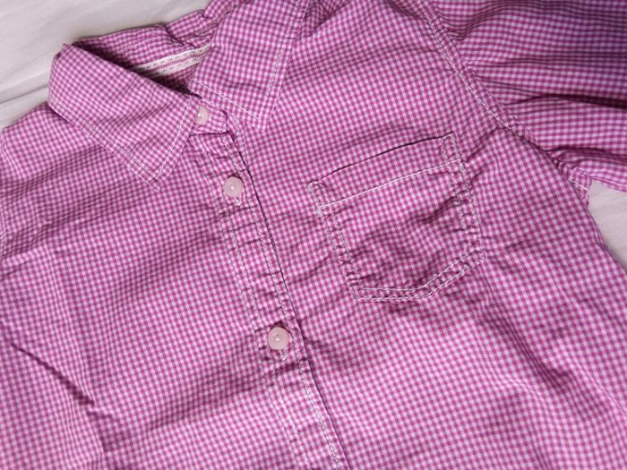 Chemise à petit carreaux rose et blancs. Taille 104 cm