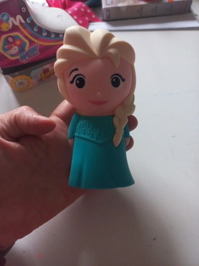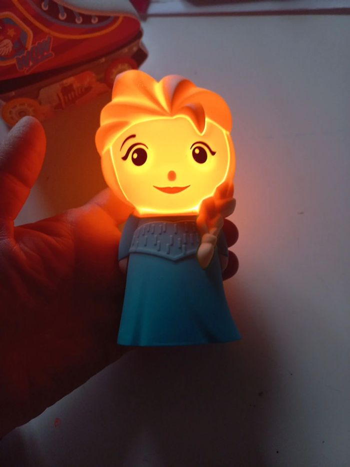 Veilleuse reine des neiges Il suffit que l'enfant la retourne pour qu'elle s'allume puis s'éteint seule. Fonctionne à piles.