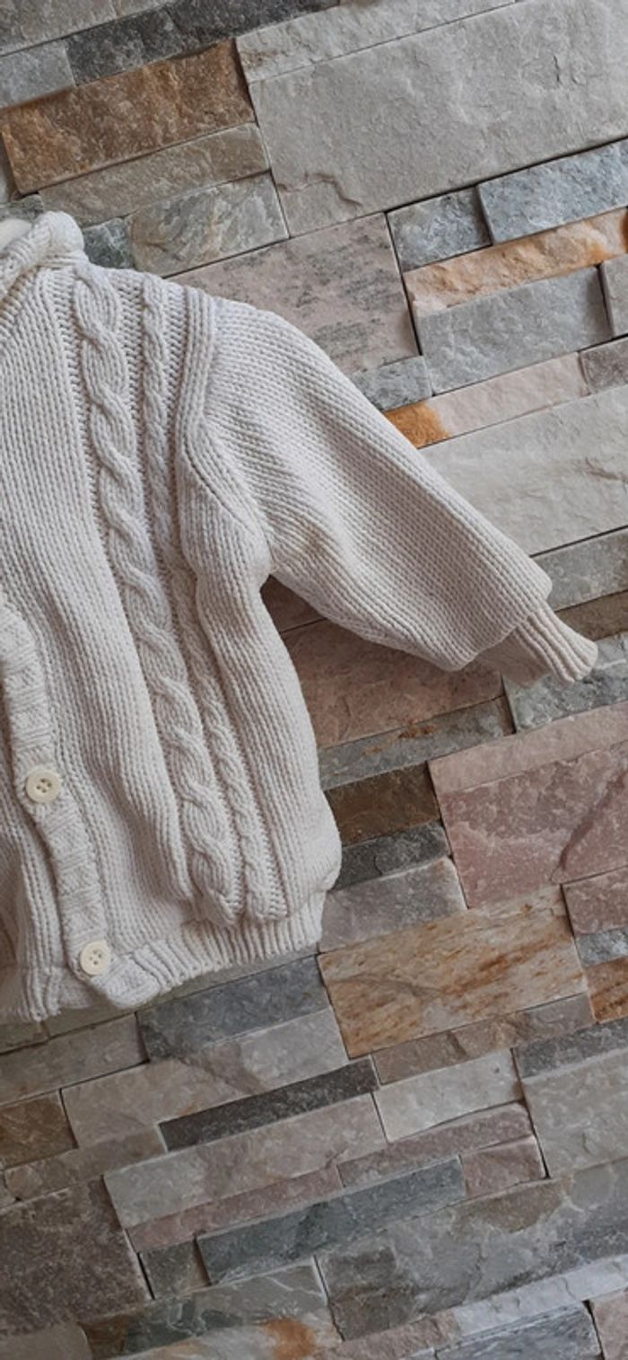 Veste beige mailles torsadées Kitchoun 9/12 mois 71 cm - photo numéro 7