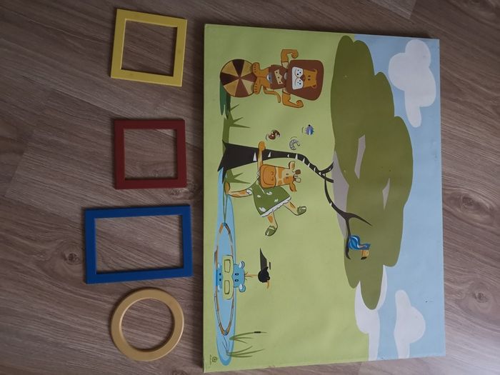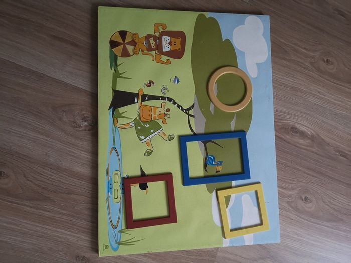 Vends tableau magnétique avec 4 cadres photos. 60x45 cm. (porte manteau, même style, vendu séparément)