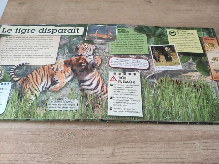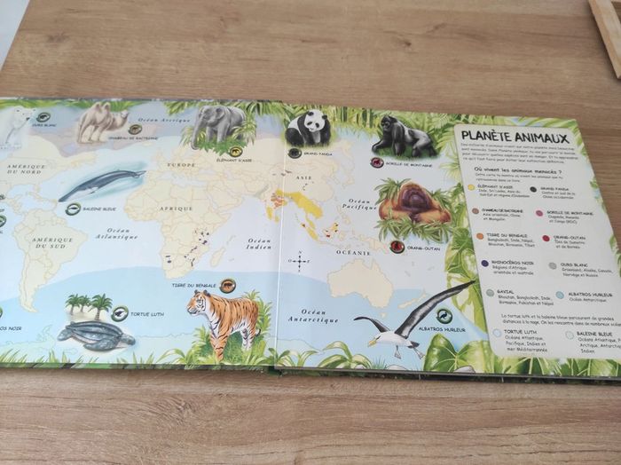 Livre qui met en lumière les animaux en danger d'extinction Des surprises a découvrir, carnet, dépliant et volet a ouvrir. Bon état général, petites traces d'usure aux coins extérieurs.