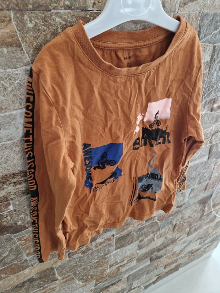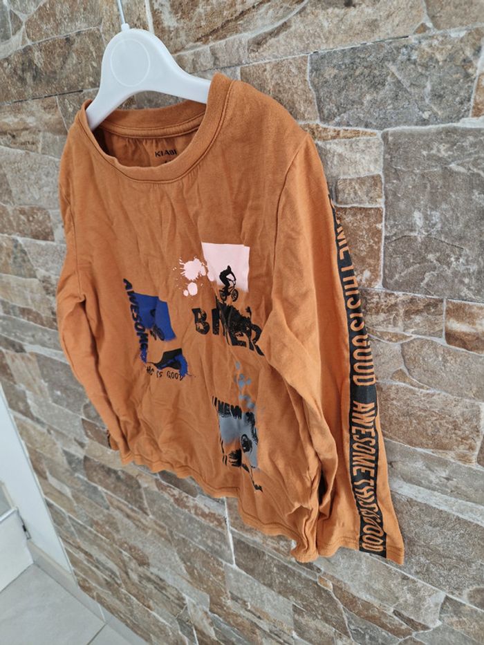 1 t shirt manche longue couleur  marron orange 6 ans 114-119 cm marque KIABI - photo numéro 1