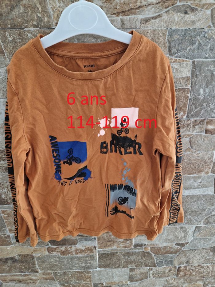 1 t shirt manche longue couleur marron orange 6 ans 114-119 cm marque KIABI #laetie69_taille6ans