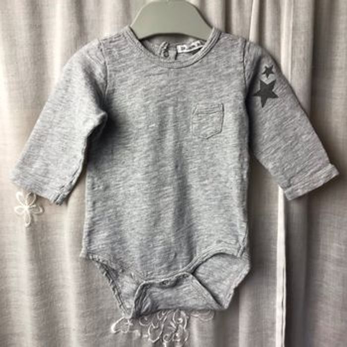 Body t-shirt gris manches longues Poche poitrine Etoile sur une manche Taille 6 mois DPAM