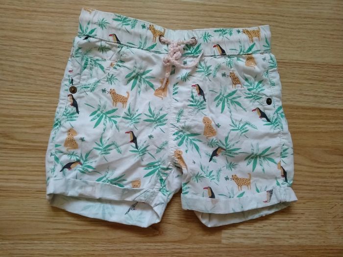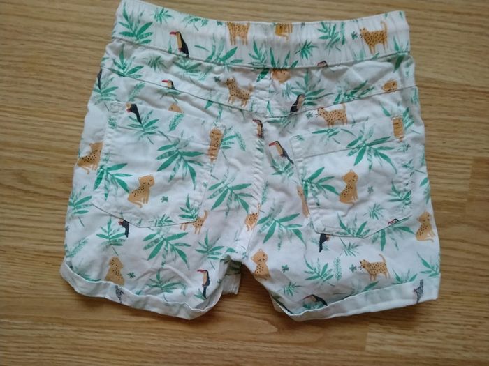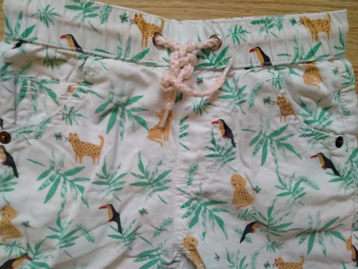Short blanc. Motif jungle. Tissaia. Taille 4 ans Blanc, feuilles de palmiers, tigres, pélicans. Lien a la taille pour resserrer Très bon état. Lavé avec lessive bébé Maison non fumeur 2 Euros D'autres articles de cette taille sur #ptitesev63fille4ans
