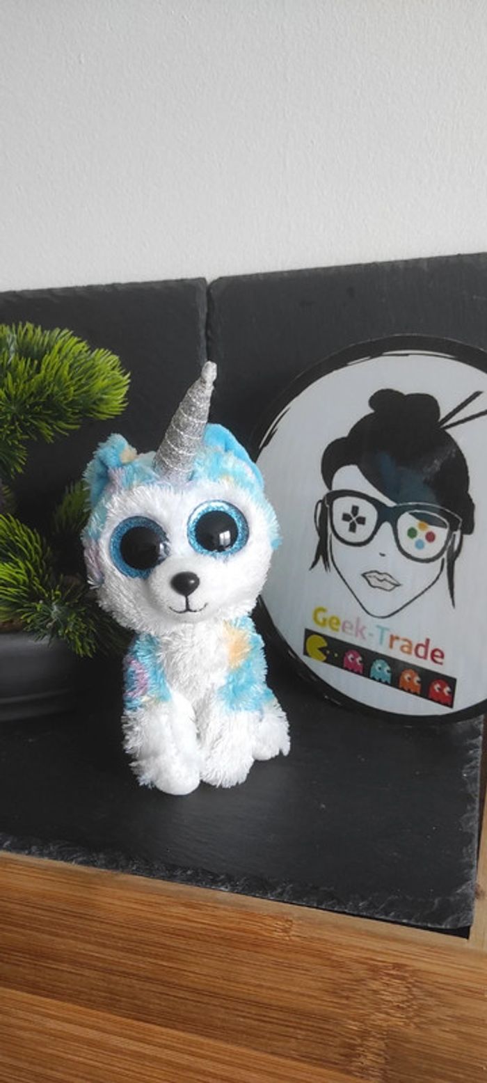 peluche Ty Beanie Boos HELENA Unicorn Husky Dog chien plush Bleu Blanc Argenté Bel état La corne a le bout tordu et il y a un manque de paillettes sur le bout de la corne Afin de ne pas abîmer les doudous et de laisser le choix dans l'utilisation de la lessive les peluches ne sont pas lavées avant envoi Description complément : Petit nettoyage à prévoir Vous achetez ce que vous voyez les photos font entièrement partie de la description #geektradety Transport : Les frais de transport comprennent les frais du transporteur ainsi que l'emballage pour protéger au mieux votre achat. Chaque achat est envoyé en format colis avec numéro de suivi Le poids du colis est de 500g finit (je ne peux pas faire moins) il peut donc y avoir plusieurs objets dans le carton si vous le souhaitez (contactez moi afinde grouper les frais de port) Référencement : #geektradedoudou #peluche #plush  #doudou #enfan