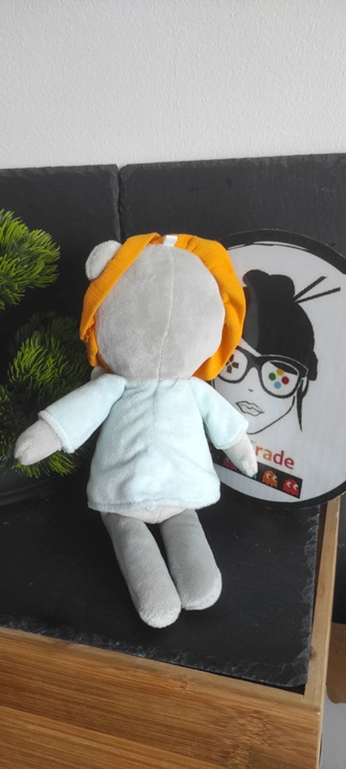 Doudou lion bleu gris orange mots d'enfants noeud papillon Peluche Blanc Pantin - photo numéro 1