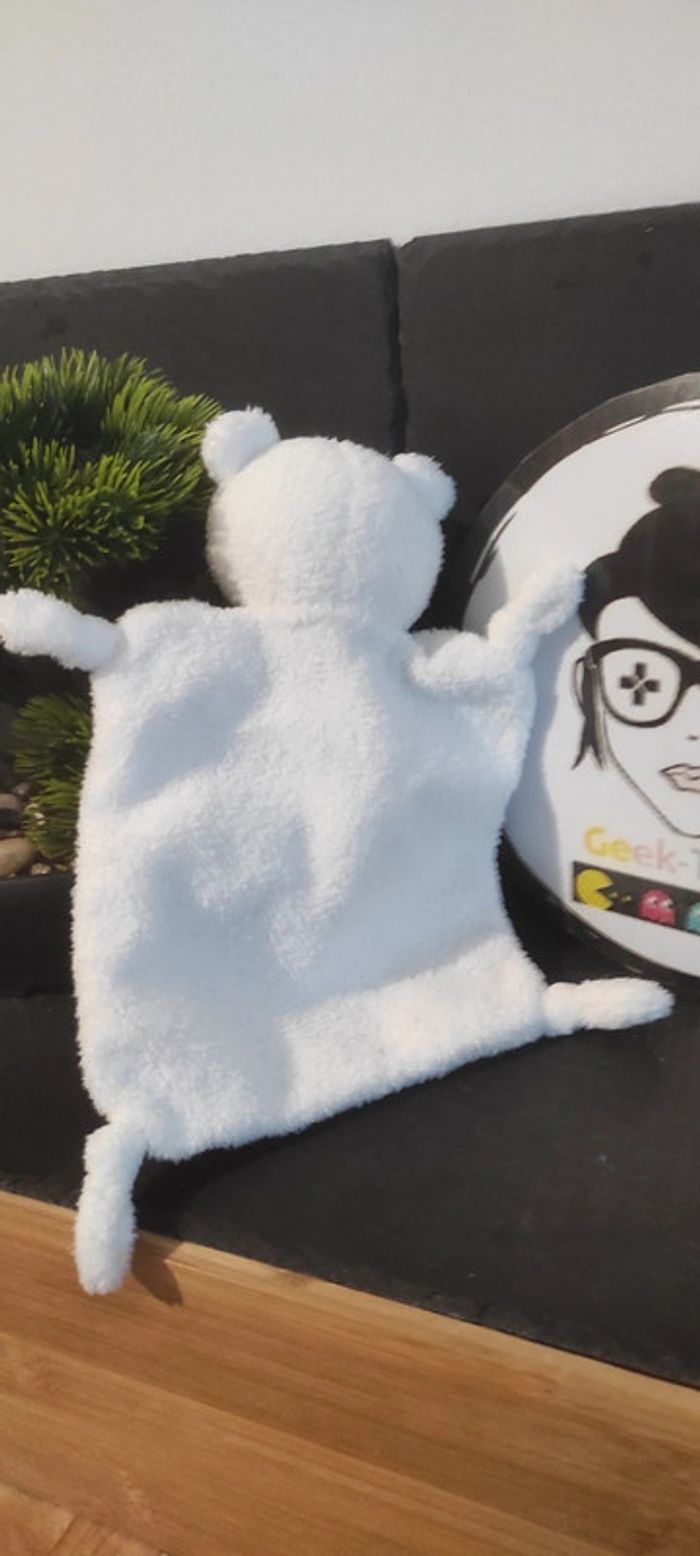 doudou ours blanc nearly everybody comes to the ikks shop Carré Plat Noeuds Bel etat Afin de ne pas abîmer les doudous et de laisser le choix dans l'utilisation de la lessive les peluches ne sont pas lavées avant envoi Envoi sous 24/48 heures (pas d'envoi du samedi au lundi cependant) Description complément : #geektradeikks Petit nettoyage à prévoir Vous achetez ce que vous voyez les photos font entièrement partie de la description Transport : Les frais de transport comprennent les frais du transporteur ainsi que l'emballage pour protéger au mieux votre achat. Chaque achat est envoyé en format colis avec numéro de suivi Le poids du colis est de 500g finit (je ne peux pas faire moins) il peut donc y avoir plusieurs objets dans le carton si vous le souhaitez (contactez moi afinde grouper les frais de port) Référencement : #geektradedoudou #peluche #plush  #doudou #enfant #bebe
