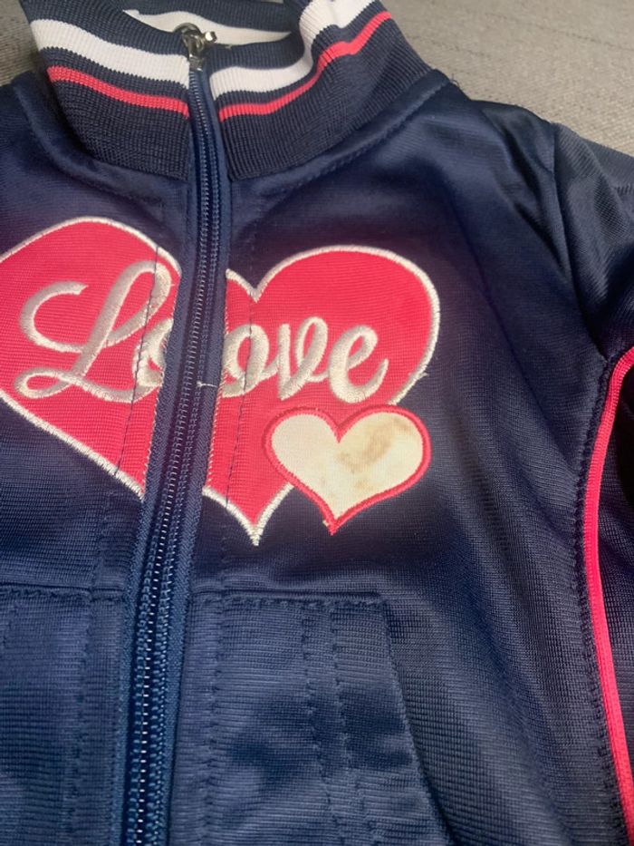 Jogging bleu 12/18 mois taché
