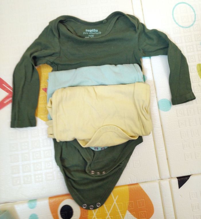 Je vends 9 bodies manches longues, 100% coton. En bon état dont 3 neufs (les blancs). Parfait pour automne hiver