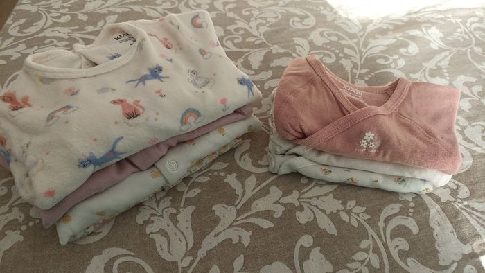 Lot de 4 pyjamas et 3 body en très bon état marque Kiabi