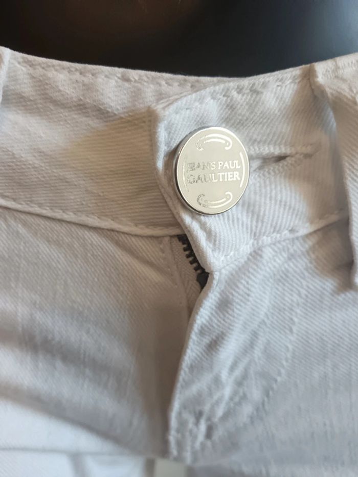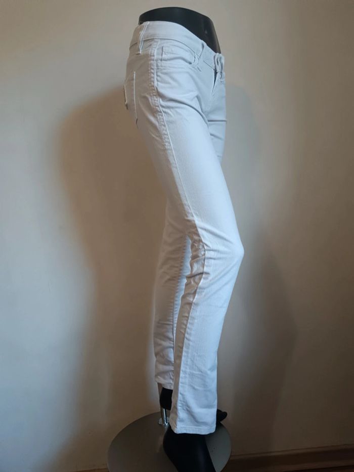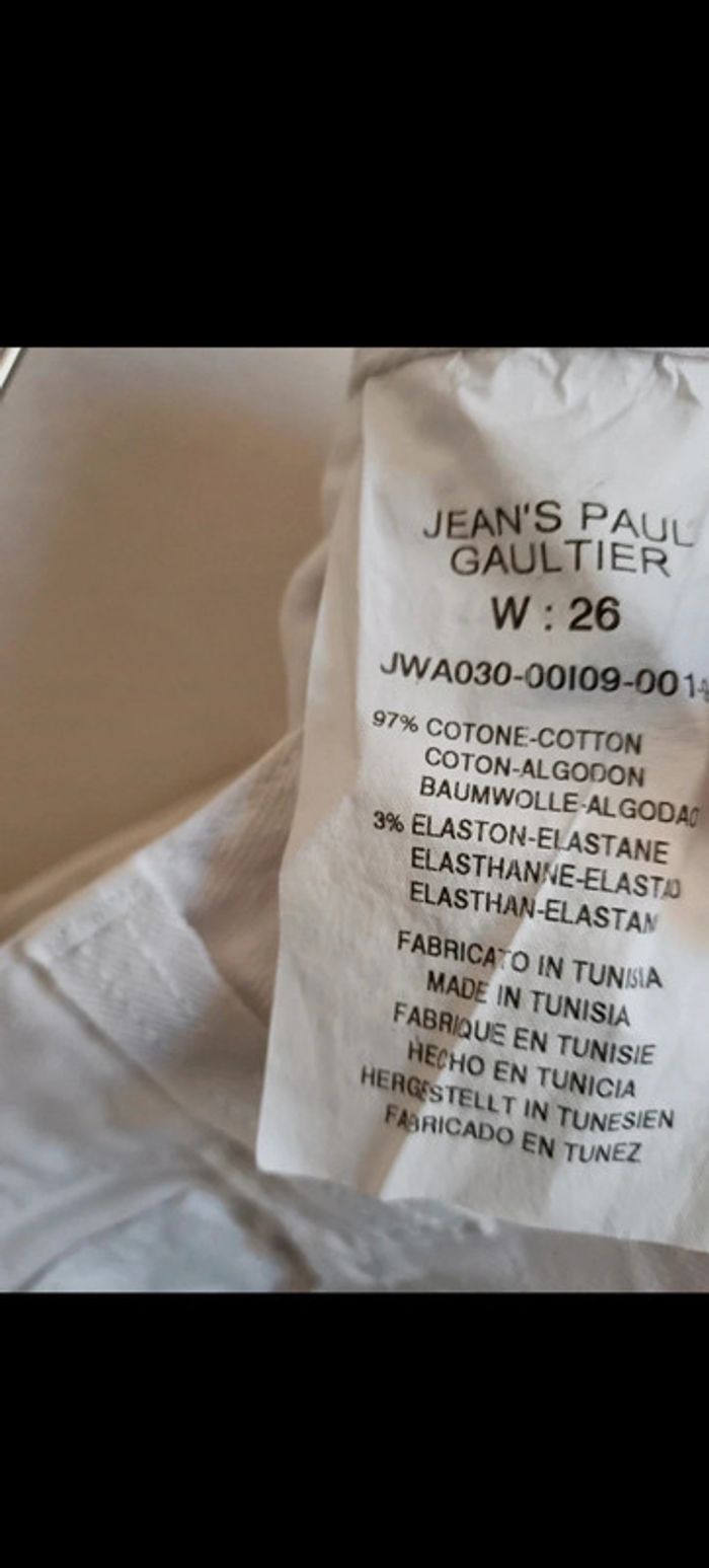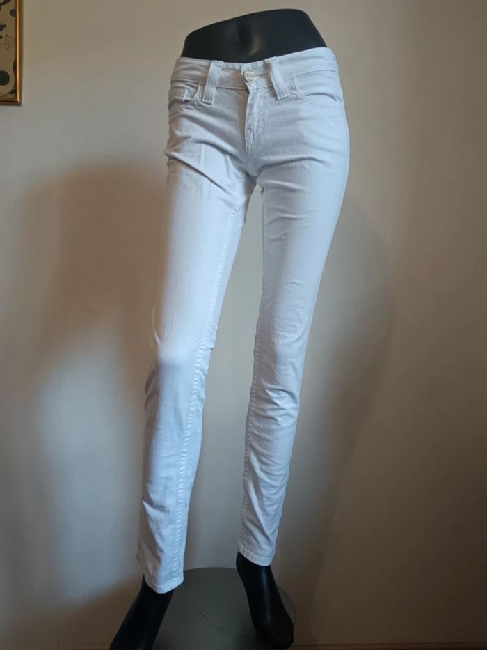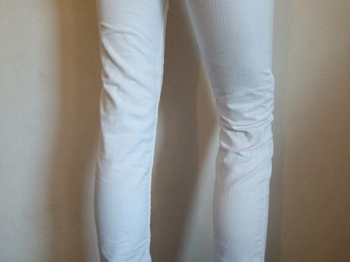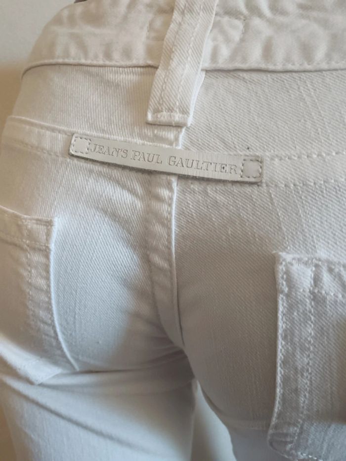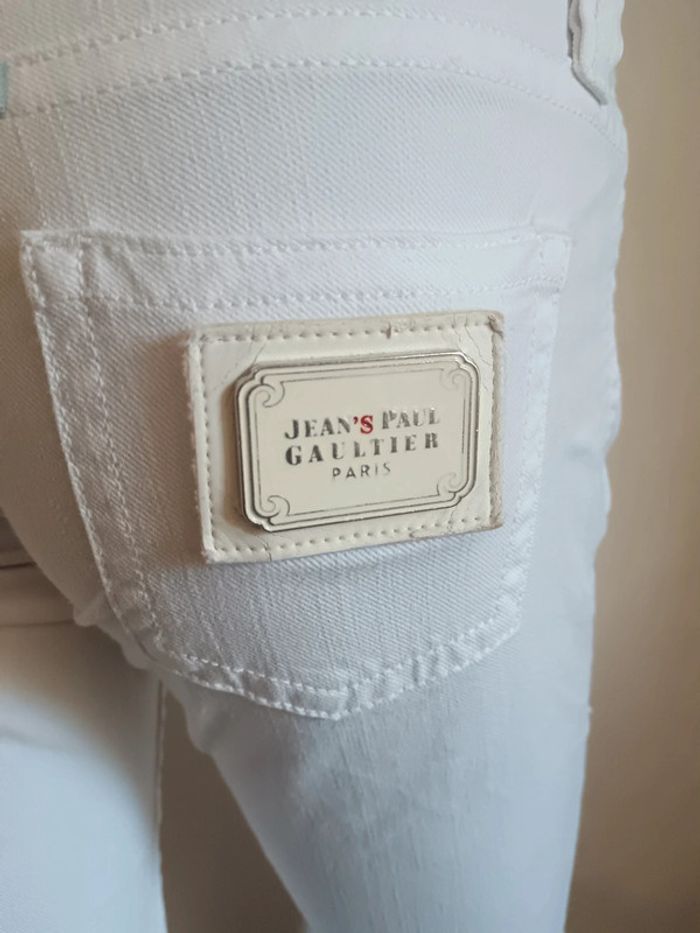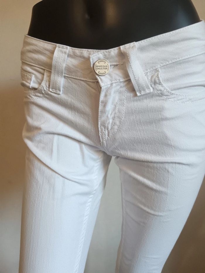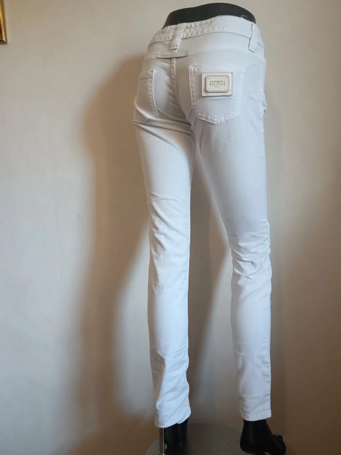 Jean slim taille basse Jean Paul Gaultier taille w26 Blanc Écusson à l'arrière Mesures : 37cm largeur ceinture 18cm entre-jambe jusqu'au haut 82cm entre-jambe jusqu'au bas #jeanjeanpaulgaultier #gaulthierjeans #calm34 #calm36