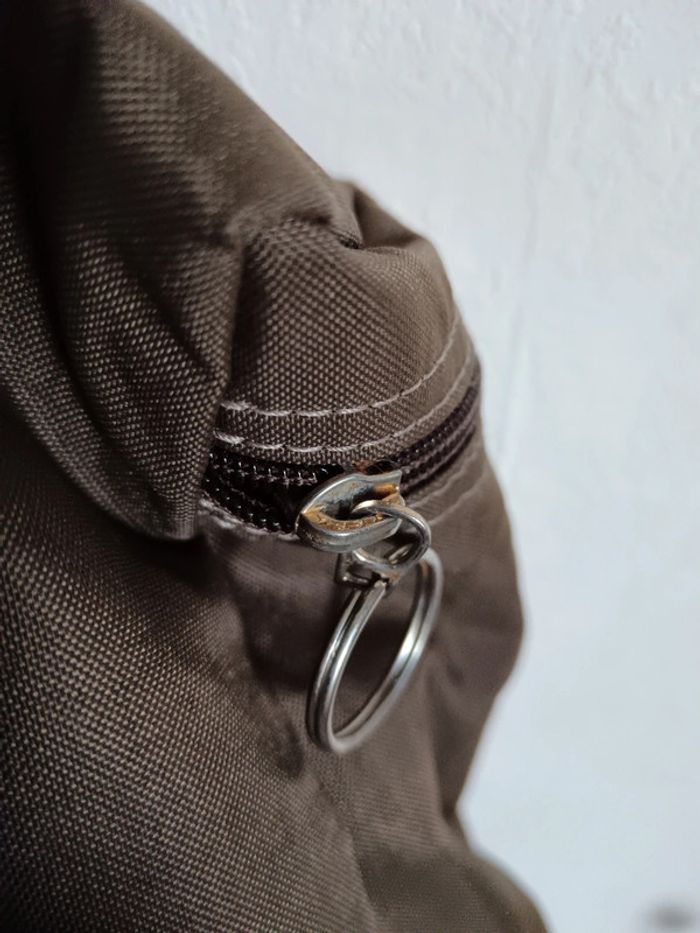 À signaler, la languette métallique du zip a été remplacée. Les 2 coins intérieurs sont griffés mais pas de trou de la doublure.