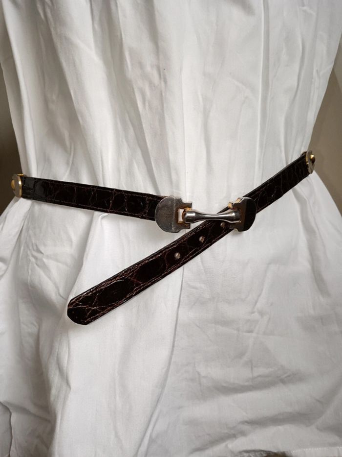 Ceinture vintage en cuir de croco véritable Coliflechet - photo numéro 1