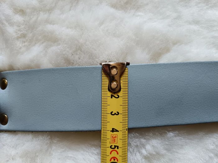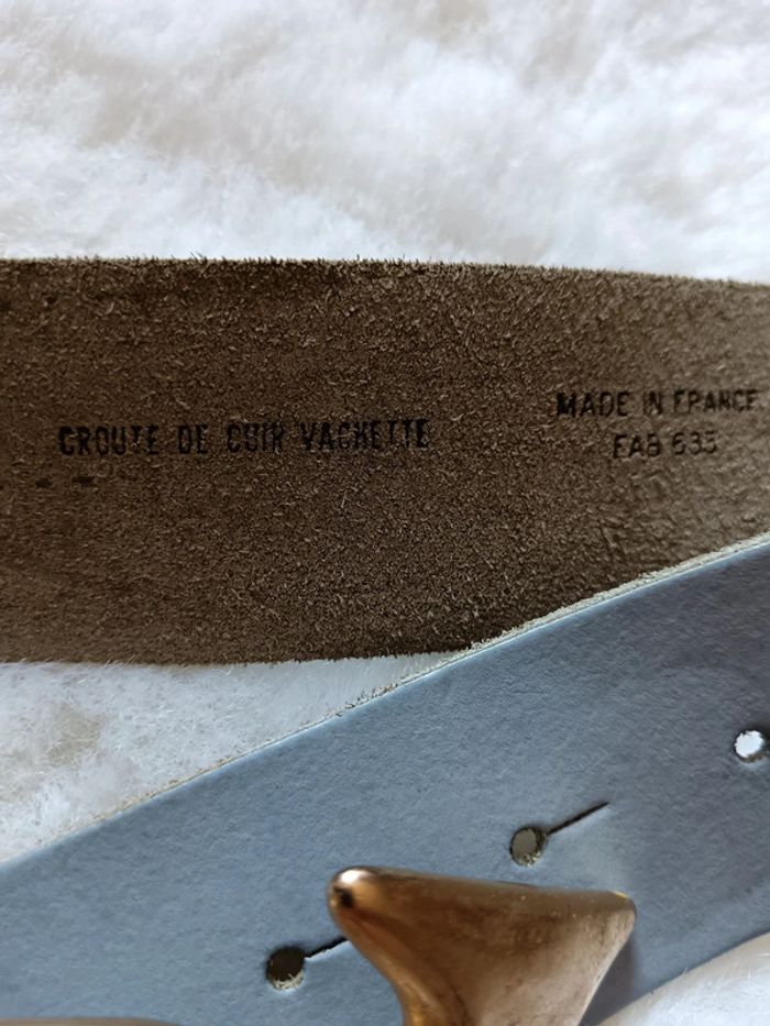 Ceinture vintage en cuir turquoise et boucle doré - photo numéro 12