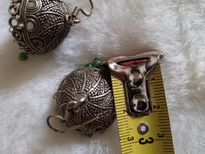 Boucles d'oreilles indienne argent pierre de jade - photo numéro 8