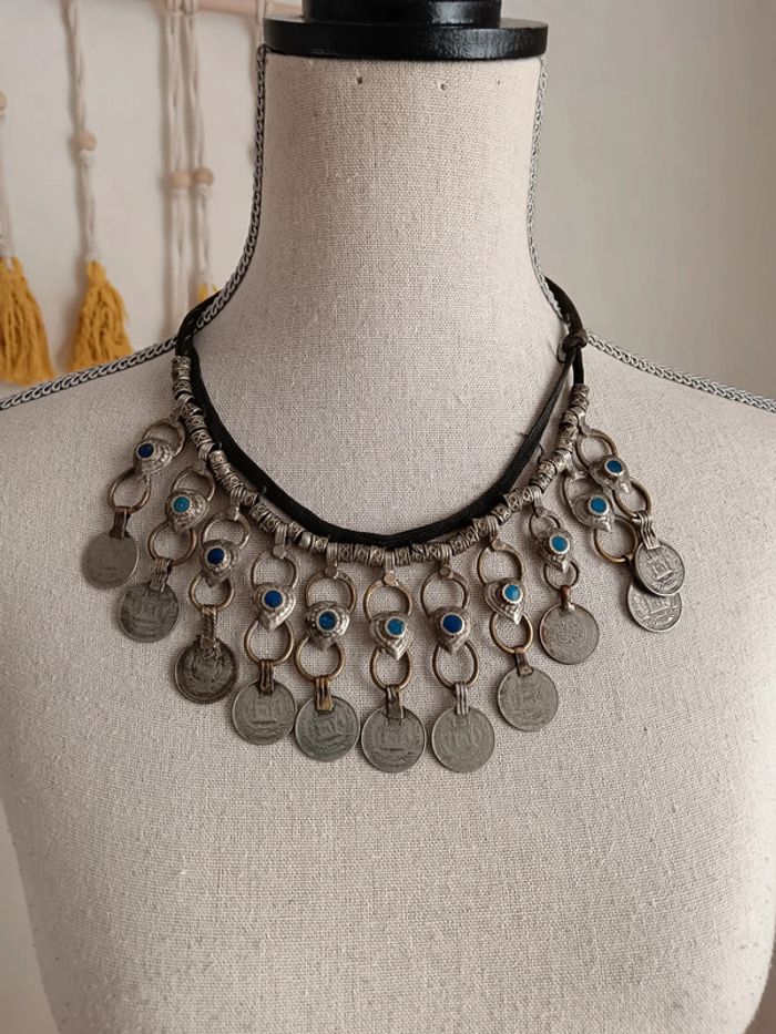 Collier afghan fait main Pièces afghanes de 1937 Une belle pépite et très original Pas d'identification de la matière #collierafghan #collierpiece #calmbijoux