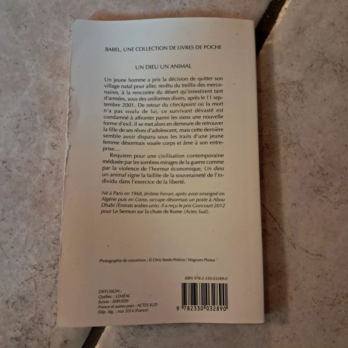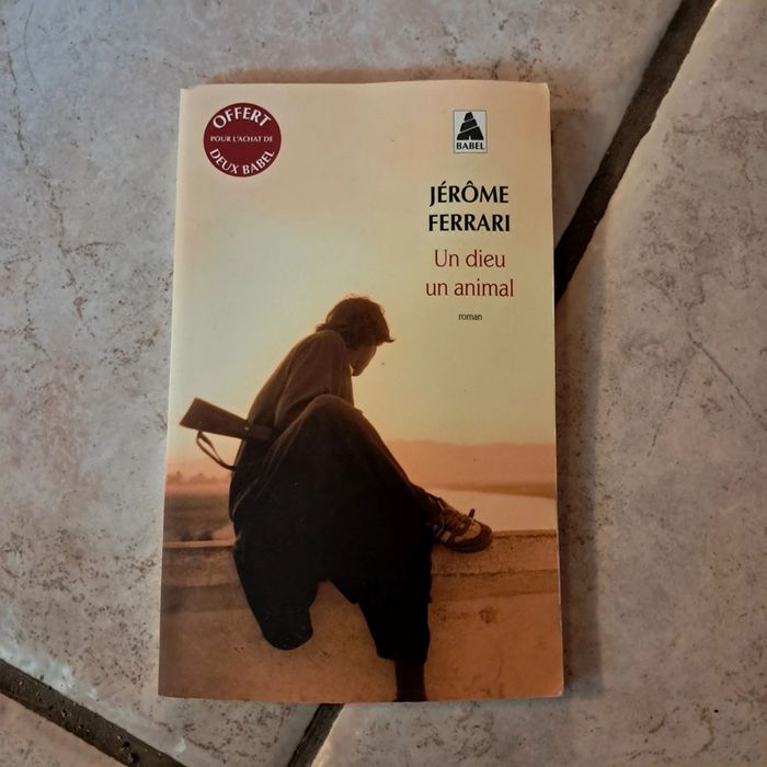 Roman " Un dieu un animal" de Jérôme Ferrari 110 pages voir le résumé sur photo 2 Bon état, mais couverture un peu abîmée (voir photo) et une inscription sur la dernière page #damla97320livres_adultes #damla97320livres