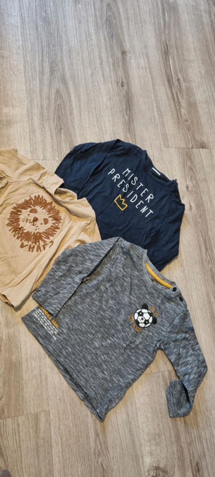 Lot de 3 tee shirts manches longues 18 mois Marques Kiabi et Gemo Bon état voire très bon état Une tâche décolorée sur le marron (voir photo) Retrouve tous mes vêtements 18 mois ici : #delhi18mois
