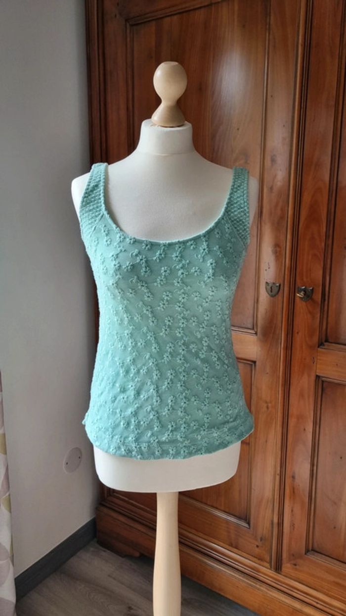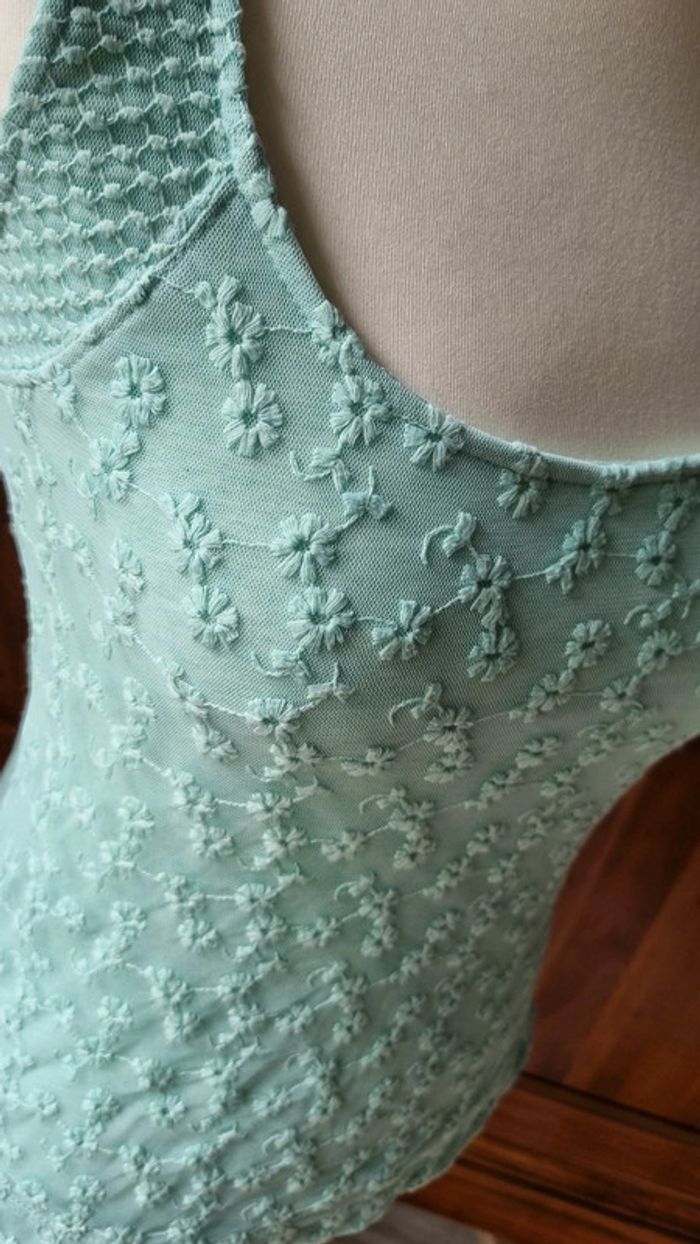 #delhifemme Top turquoise Dentelle et fleurs sur le devant Jamais porté
