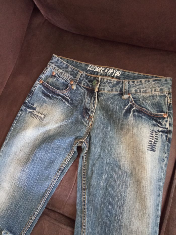 Jeans tendance T40 "Jennyfer" aspect délavé et usé - très bon état - photo numéro 2