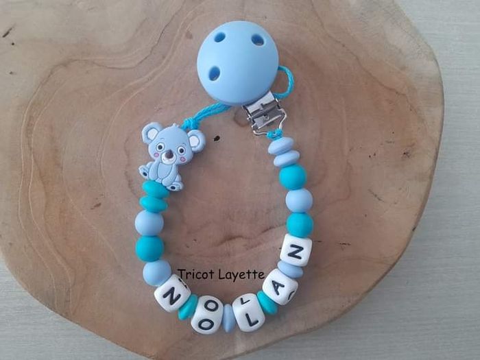 Attache tétine en silicone personnalisé au prénom de votre enfant (envoyez moi un message pour la personnalisation) Possibilité de rajouter un adaptateur en silicone pour les tétines Mam (+0,75€) (me contacter avant l'achat pour que je modifie le prix) Délais de fabrication et d'envoi : 48h maximum Les couleurs peuvent être changées à votre demande. L'attache tétine ne sera faites qu'une fois le paiement validé, une photo vous sera envoyée avant l'envoi du colis.