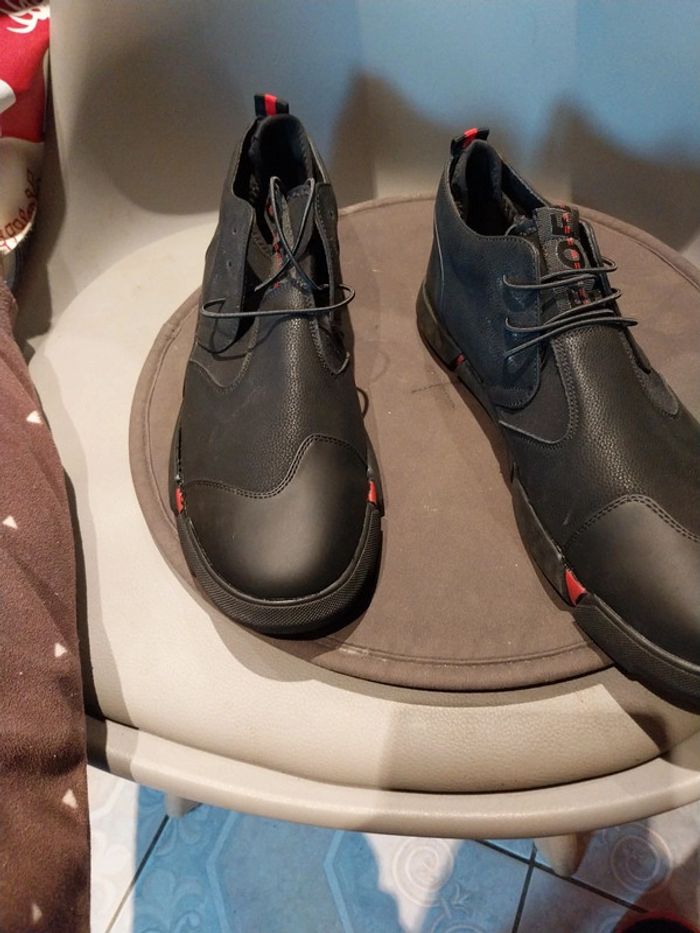 Chaussures neuf noir est rouge en cuir souple je n'ai plus la boîte je ne connais pas la marque mais c'est de bonne qualité inscrit dessus off W