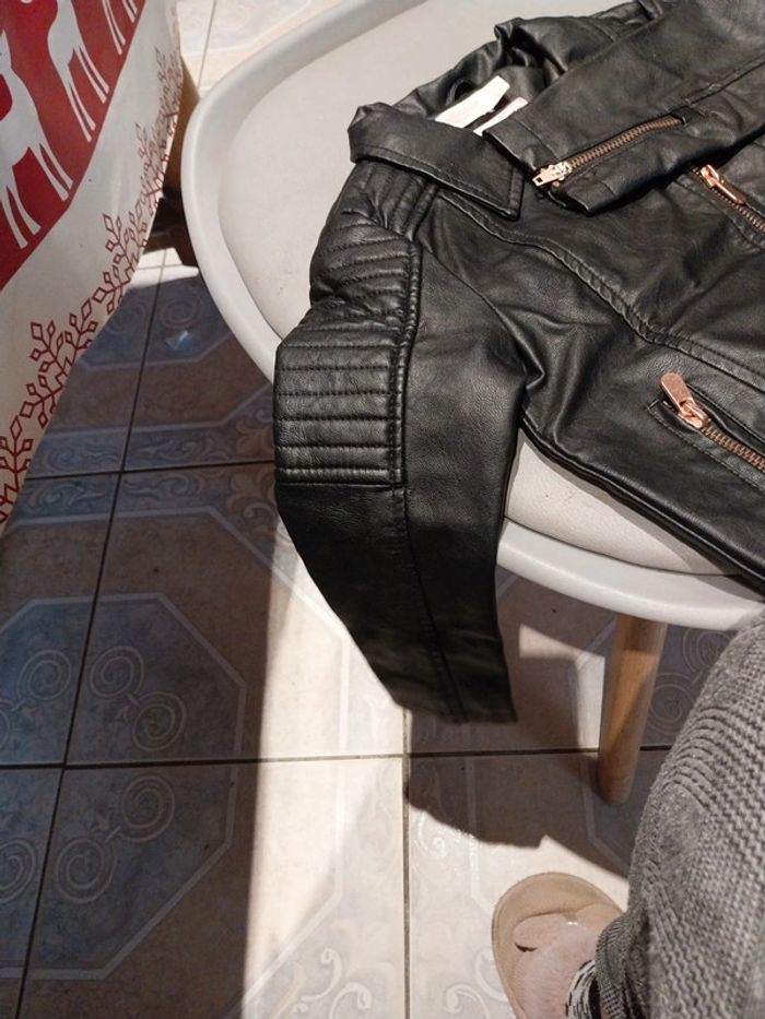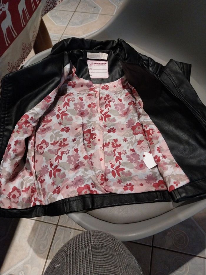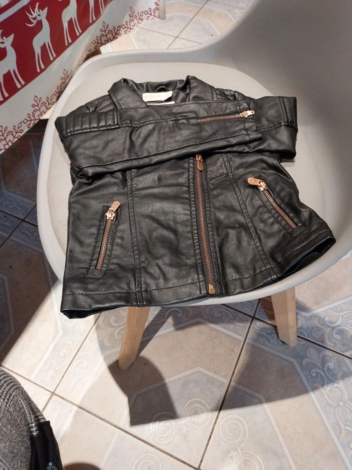 Veste noir simili cuir très jolie fermeture éclair légèrement rose