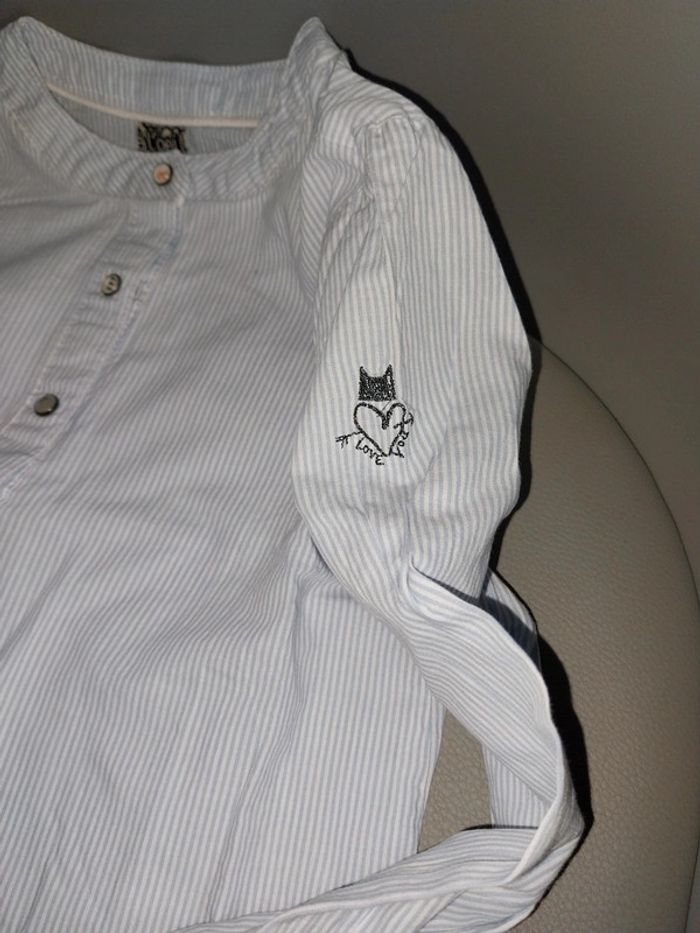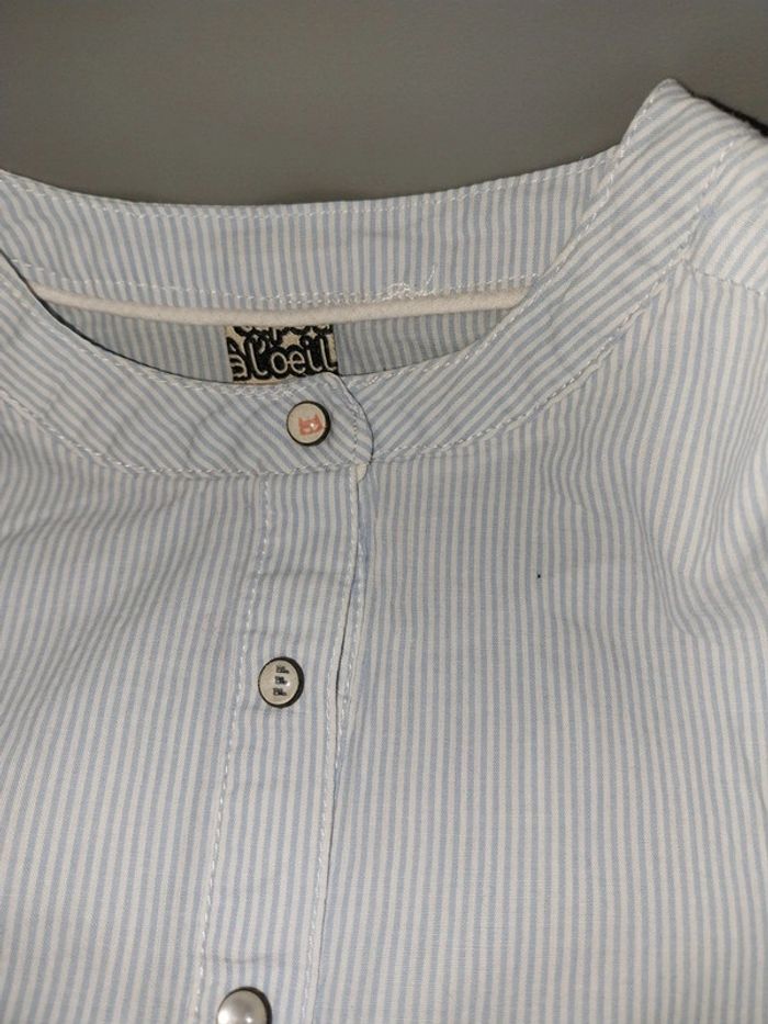 2 chemisiers longues manches 1 à lignes bleues clair et blanc et blanc rouge et bleu très élégant