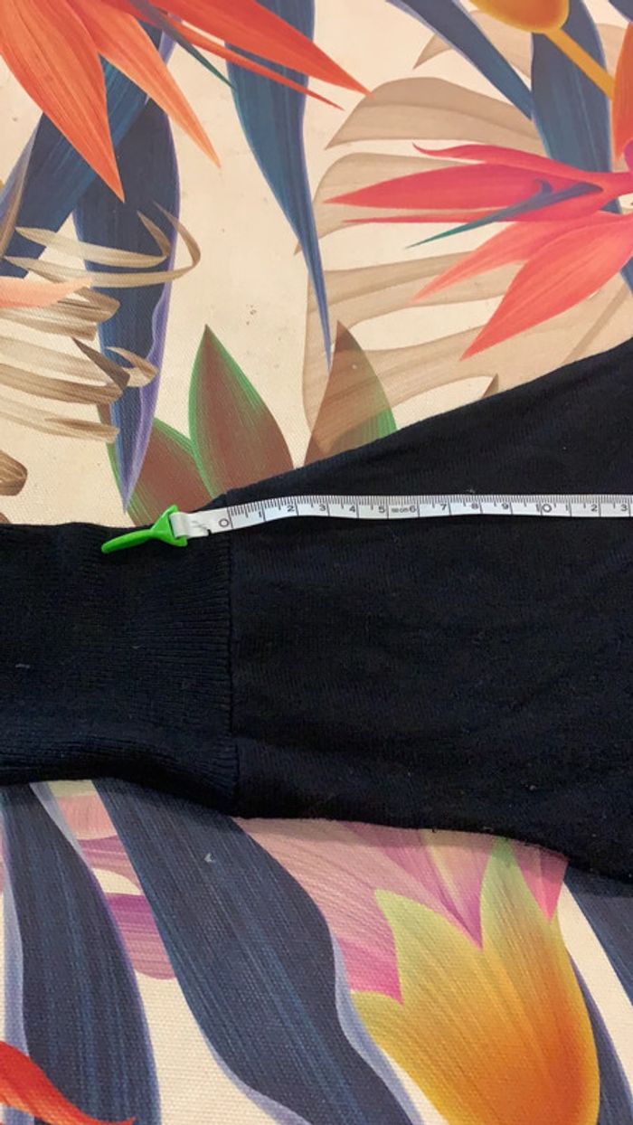 Pull noir de la marque : - M ♥️ Fashion, manches 3/4 chauves souris . Taille Unique 36/40. Joli papillon 🦋 en dentelle au dos et des strass qui souligne le papillon . Il est comme neuf car très très peu porté . Merci infiniment de lire les dimensions ci-après : - longueur 60 cm, largeur aisselles à aisselles 54 cm, largeur du bas 25 Cm et largeur a la taille 40 cm . Largeur des épaules à épaule 82 cm.