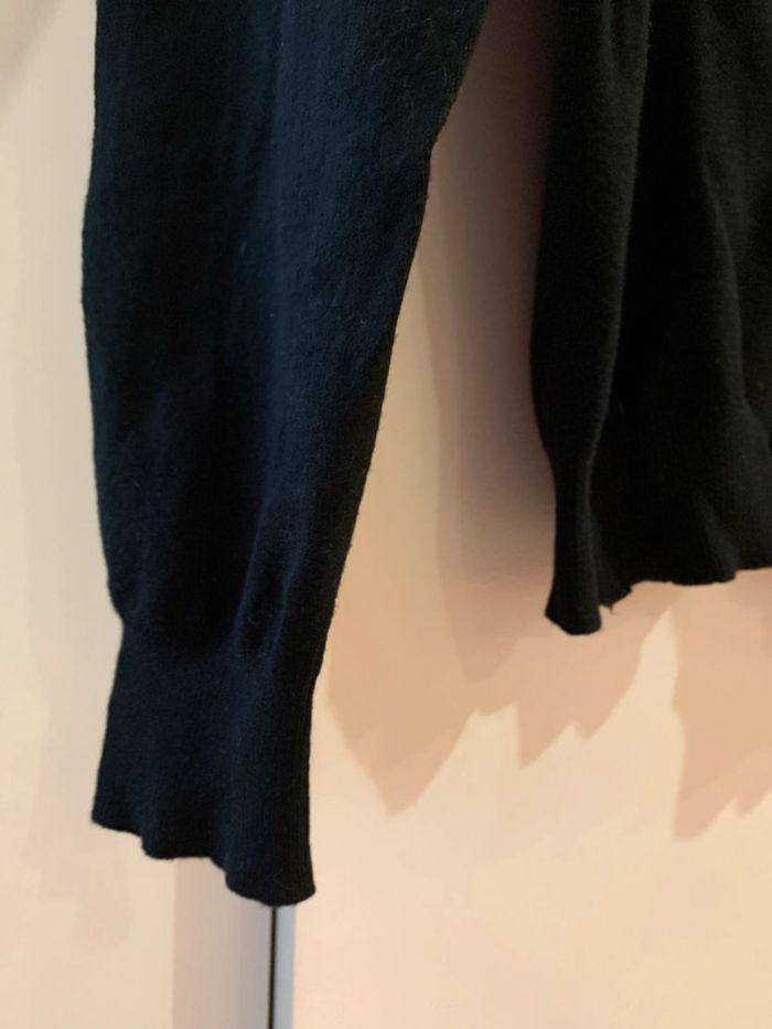 Pull noir col V . De la marque :-« WK Collection « . Taille S . Il est comme neuf car très très porté. Merci d prendre en considération les dimension ci-après : - Largeur d’épaule à épaule 38 cm, largeur des aisselles 45 cm, largeur a la taille 40 cm et l du bas32 cm. - Longueur totale 58cm et longueur des aisselles jusqu’au bas 41 cm. - Longueur des manches dessous de bras 51 cm et longueur de l’épaule jusqu’en bas 60,5 cm. - Largeur de l’épaule 19 cm, largeur du biceps 15 cm et 8,5 de largeur du poignet .