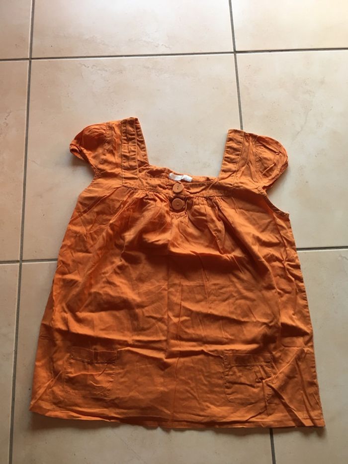 Blouse orange Promod taille 38, très agréable à portée, il est comme neuf car peu porté, malgré son manque de repassage.