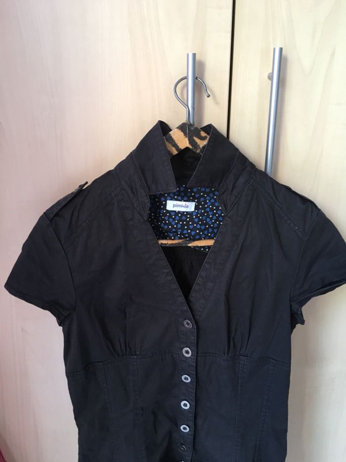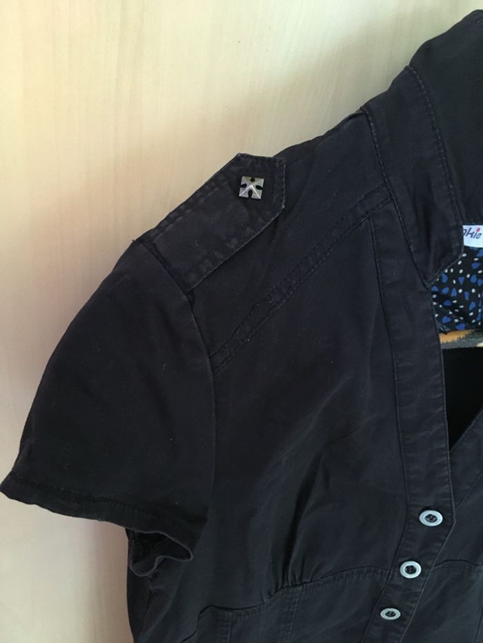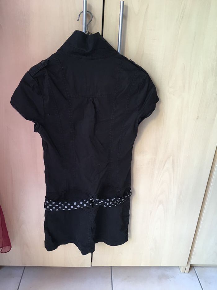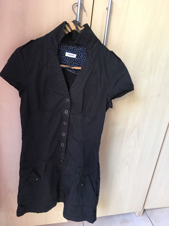 Robe noire à manches courtes, cloutées de petites étoiles aux épaules et aux poches . Taille 36. Elle a un look 👀 d’officier et elle est comme neuve car très très peu portée. De la marque : “ Pimkie “.