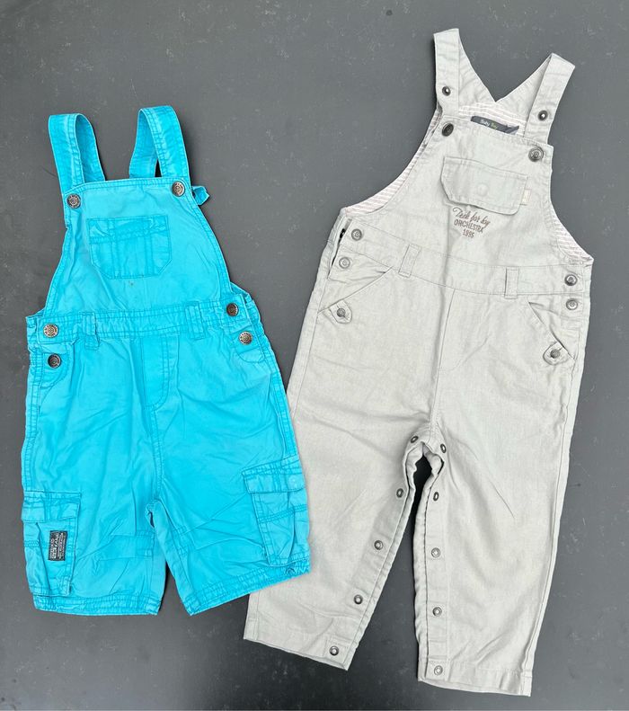 Ensemble composé de 2 salopettes: - bleu turquoise: fermeture par pressions aux bretelles et sur les côtés, poches, jambes courtes. Nombreuses tâches tenaces. 100% coton, marque Kidkanaï. - couleur écru: fermeture par pressions a l’entrejambe, bretelles et côtés. Poche sur le devant, fausses poches à l’arrière. Une tâche tenace sur l’arrière. 55% lin, 45% coton. Marque Orchestra. Le tout taille 2 ans. Envoi rapide et soigné, réduction automatique dès 2 articles sélectionnés dans mon dressing. Mes autres ventes ici: #24moisgarçonugolola #24moisgarcon #salopettegarcon24mois #salopettegarçon2ans #2ansgarçon #lingarcon24mois