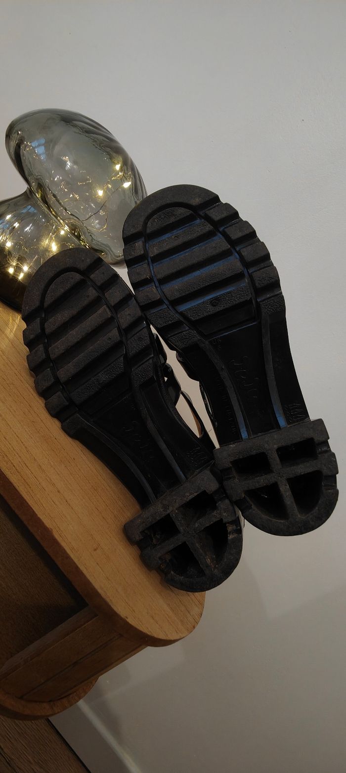 Paire de méduses noires qui vient de la marque anglaise Juju (voir photo). Ça c'est la paire pour un look pleinement assumée et carrément originale ! 🤟🏻🖤 J'ai malheureusement peu l'occasion de porter ces beautés donc au lieu qu'elles prennent poussière autant qu'elle fasse un-e heureux-se Portées quelques fois mais ça bouge pas ! Taille UK 6. Hauteur 5cm. #autumn#autumnvibes#automne#meduse#original
