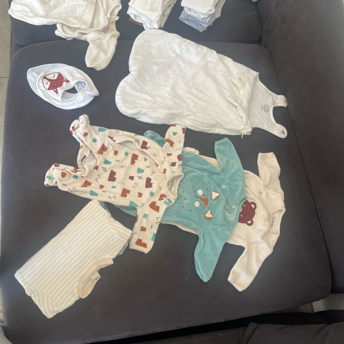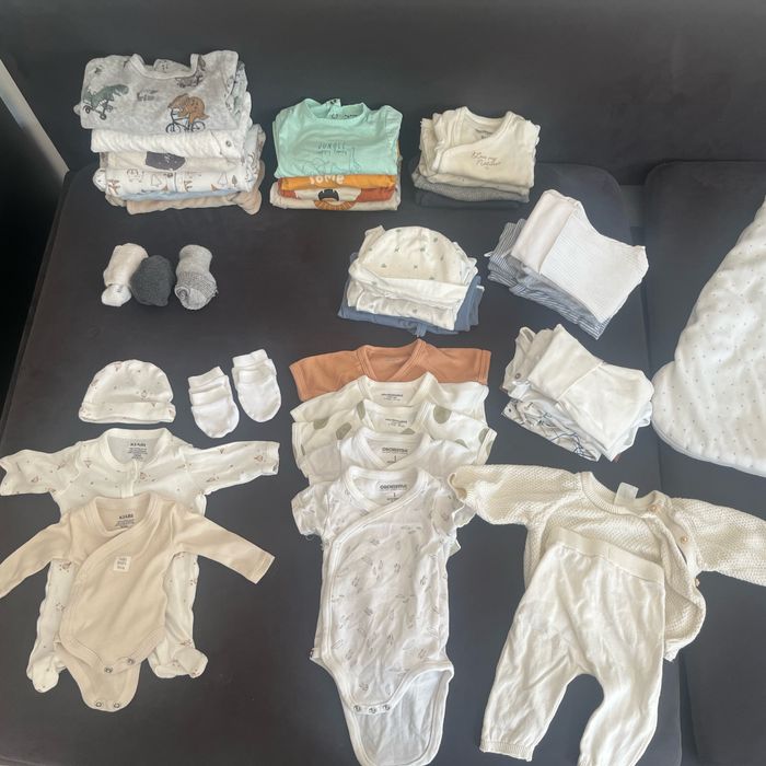 Lots de vêtements bébé 00 mois 1/2 mois 2 pyjama 3 mois 1 gigoteuse 00-3 mois 9 pyjama velours 4 pyjama coton 4 body manche longue 7 ensembles body pantalon 5 body manche courte 1 ensemble gilet pantalon 3 paire chaussettes 2 bavoirs 2 paire de gant naissance 1 tenue naissance body pyjama et bonnet Kiabi/orchestra /H&M/verbaudet