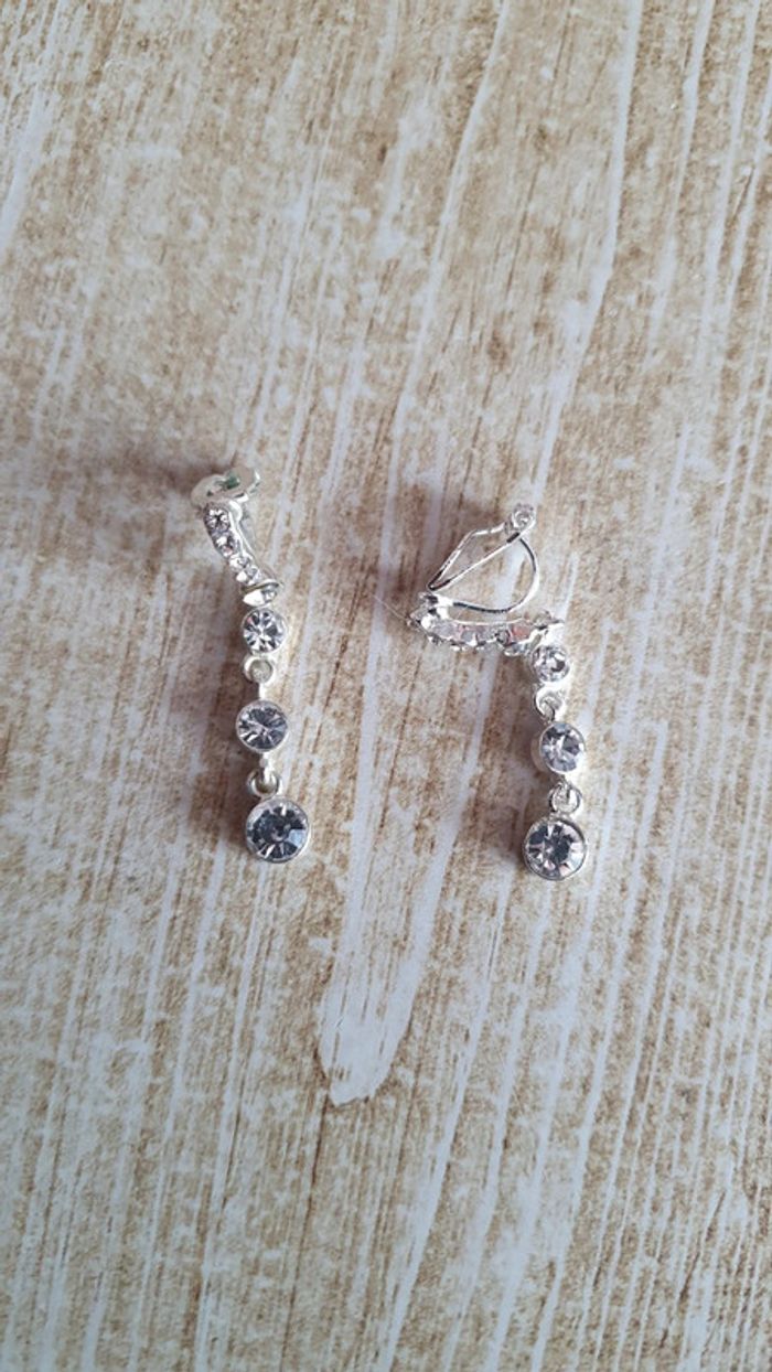 Boucle d'oreilles argenté avec genre de diamants - photo numéro 1