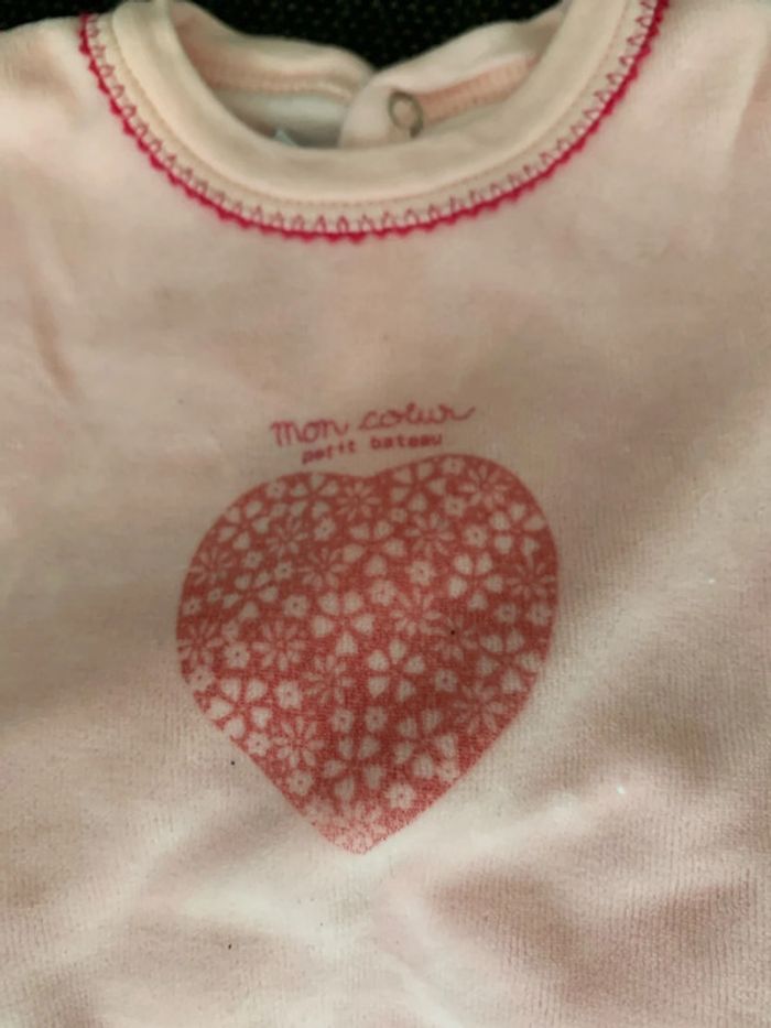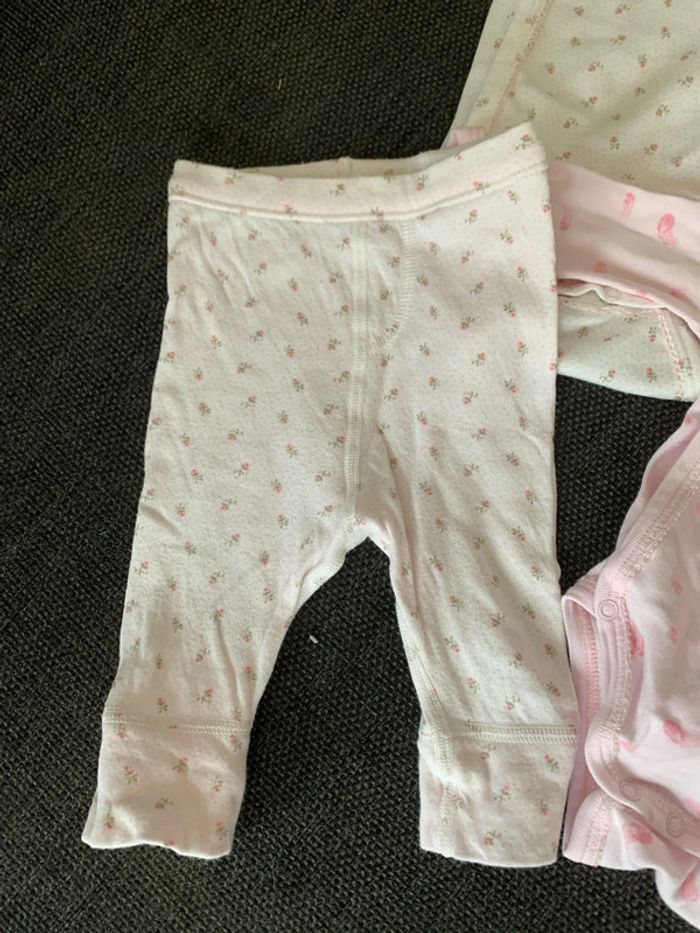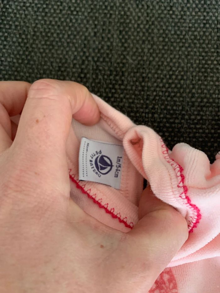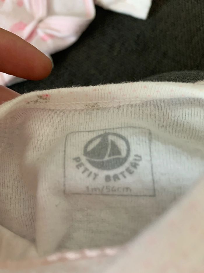 Lot qui contient : - deux bodies manches longues petit bateau en parfait état - un pyjama velours rose en très bon état - un pantalon type legging assorti à l’un des bodies en très bon état. Donc 4 articles petit bateau, 1 mois en très bon état! 54 cm