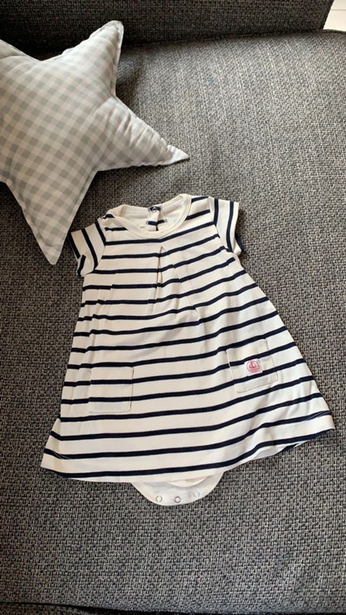 Robe Marinière petit bateau avec body inclus, 12 mois en très bon état - photo numéro 2