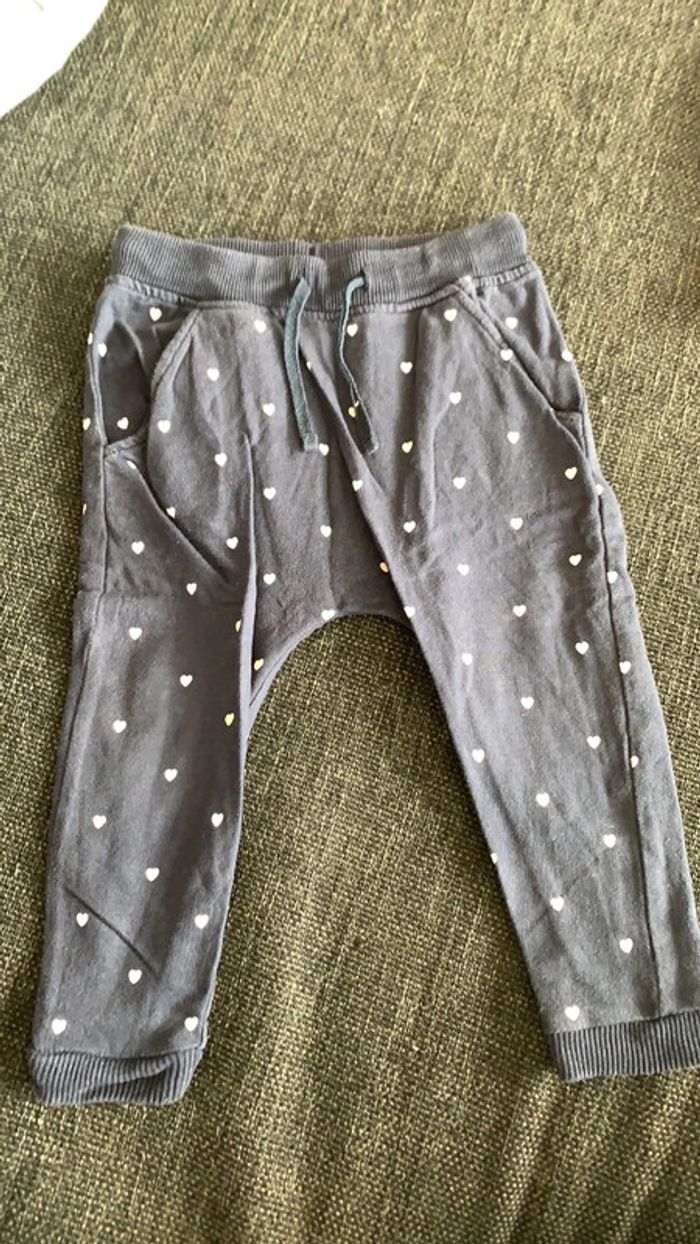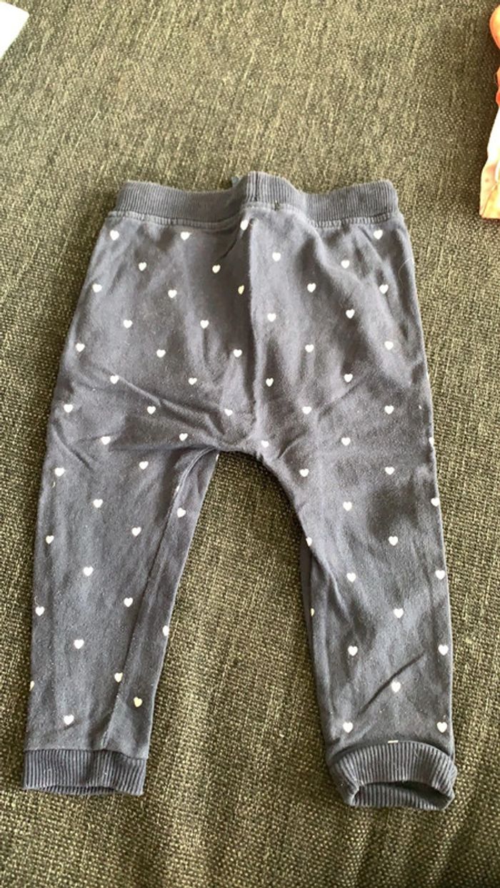 Pantalon tout mou bleue marine imprimé cœurs blancs, boutchou, 12 mois en bon état - photo numéro 3
