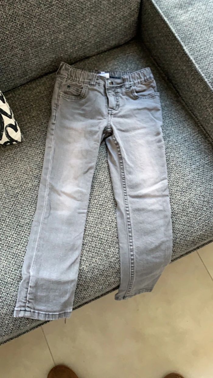 Jean gris légèrement délavé Comme neuf, aucun signe d’usure Jacadi, bonne qualité, 5 ans