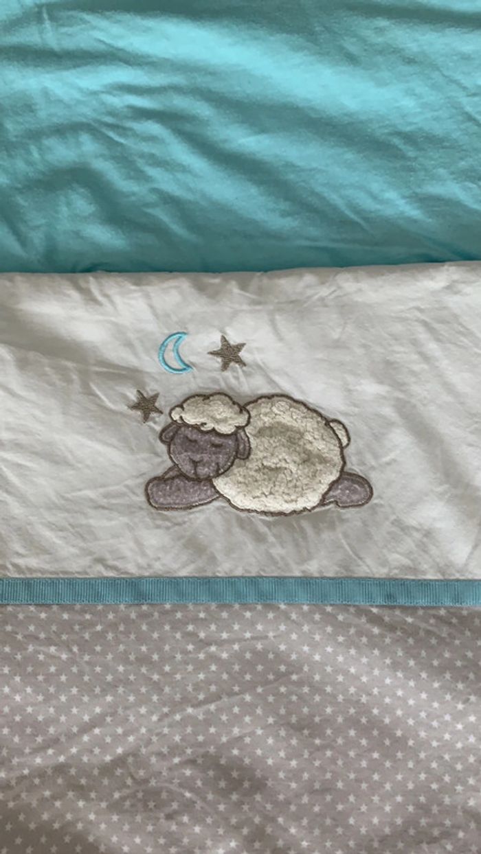 Nid d’ange, carré blanc, turquoise et gris en bon état - photo numéro 9