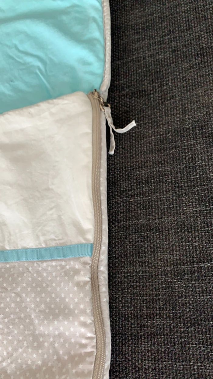 Nid d’ange, carré blanc, turquoise et gris en bon état - photo numéro 6