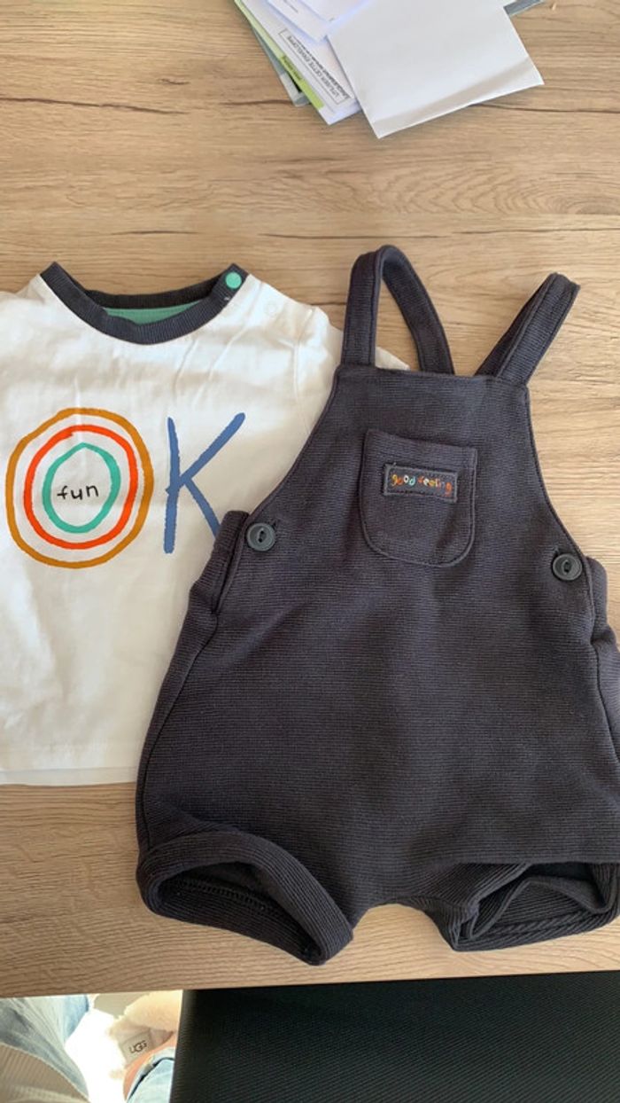 ensemble Kiabi 3 mois, tee-shirt + salopette courte en très bon état #chlo4242bébégarcon