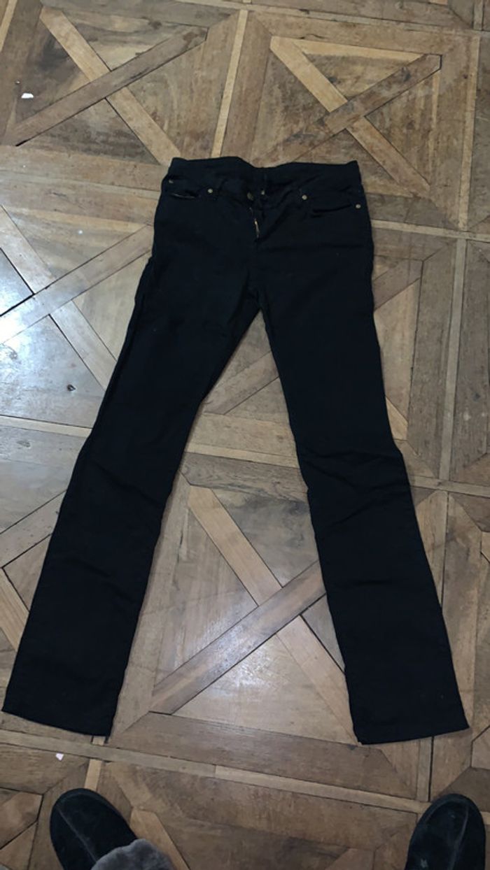 Pantalon noir aquarelle en taille 29 (soit un 38) Très bon état, peu porté. Coupe droite
